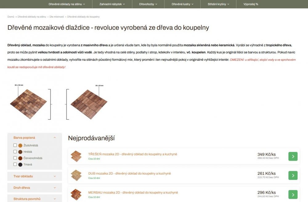 - Dřevěné obklady