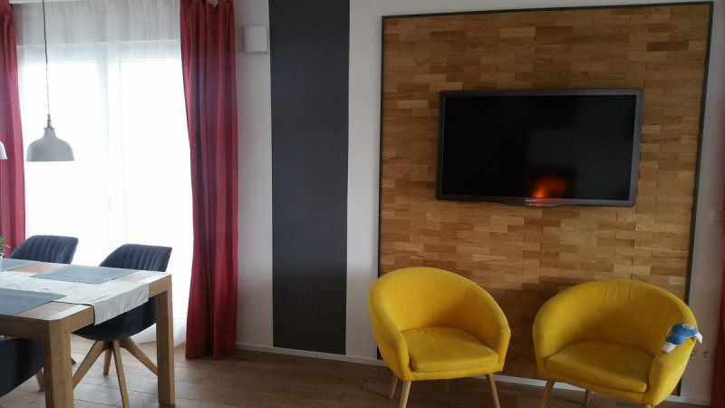 - Realizace dřevěného obkladu v prostoru za televizí
