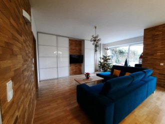 Realizace dřevěného obkladu v obývacím pokoji - dub
