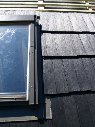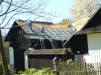 Náhrada plastového šindele DDS II za starý dřevěný šindel. Obnova posezení dopadla na výbornou.