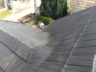 Náhrada plastového šindele DDS II za starý dřevěný šindel. Obnova posezení dopadla na výbornou.