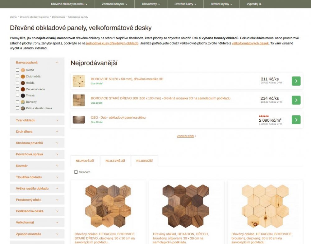 V nabídce dřevěných obkladů můžete využít FILTR!