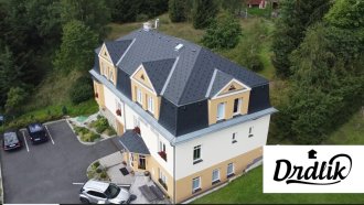 Záběr z dronu: Plastový eternit EUREKO CPC na budově obecního úřadu