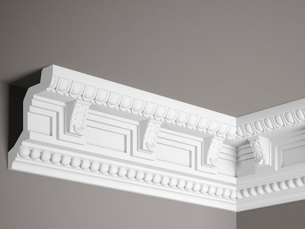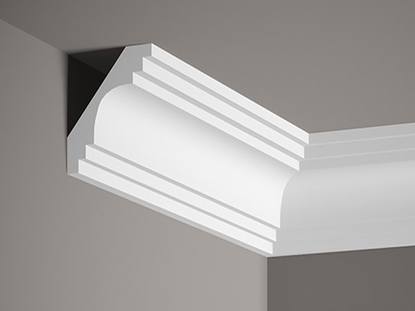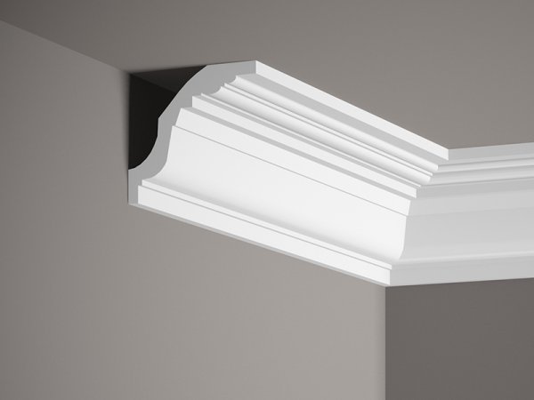Stropní lišta – S ORNAMENTEM, tvrdý materiál ProFoam (Polyuretan), základní bílý nátěr (přetíratelný), 98 x 100 x 2000 mm