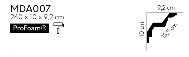 Stropní lišta – HLADKÁ, tvrdý plast ProFoam® (polyuretan), základní bílý nátěr (přetíratelný), 178 x 170 x 2000 mm
