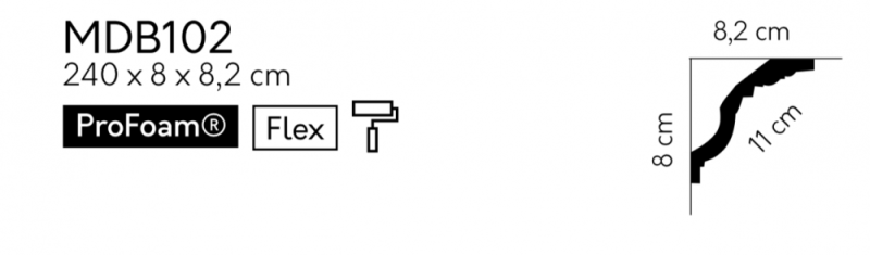 Stropní lišta – HLADKÁ, tvrdý plast ProFoam® (polyuretan), základní bílý nátěr (přetíratelný), 80 x 80 x 2000 mm