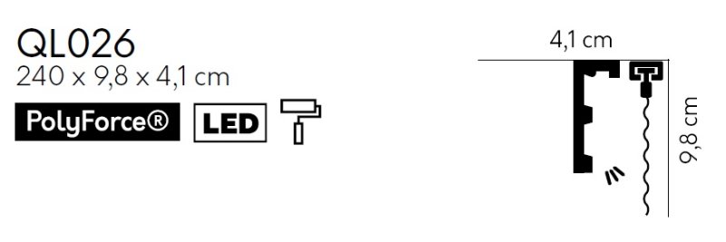 Garnýžová LED osvětlovací lišta, NEPŘÍMÉ OSVĚTLENÍ, tvrdý plast PolyForce (HD Polymer), základní bílý nátěr (přetíratelný), 100 x 41 x 2400 mm