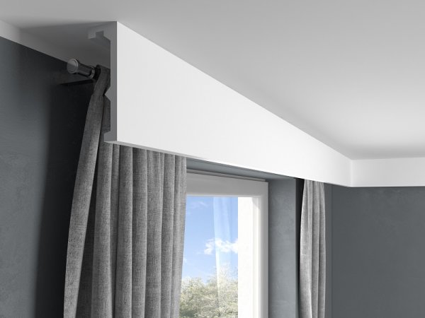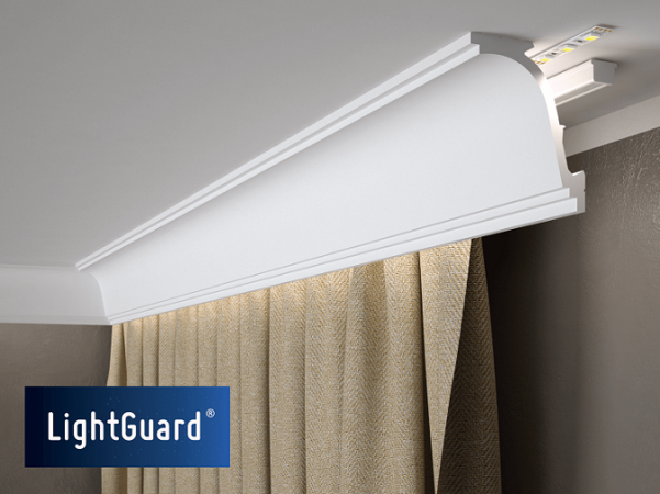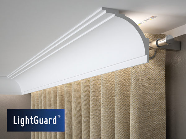 Garnýžová LED osvětlovací lišta, NEPŘÍMÉ OSVĚTLENÍ, tvrdý plast PolyForce (HD Polymer), základní bílý nátěr (přetíratelný), 120 x 50 x 2400 mm