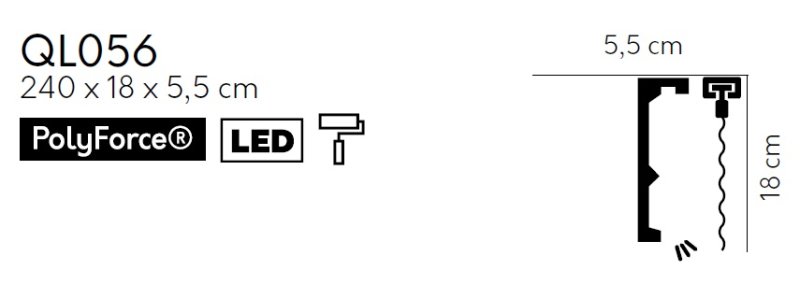 Garnýžová LED osvětlovací lišta, NEPŘÍMÉ OSVĚTLENÍ, tvrdý plast PolyForce (HD Polymer), základní bílý nátěr (přetíratelný), 179 x 55 x 2400 mm