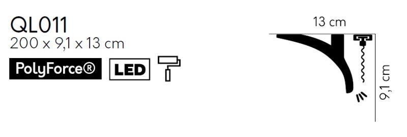 Garnýžová LED osvětlovací lišta, NEPŘÍMÉ OSVĚTLENÍ, tvrdý plast PolyForce (HD Polymer), základní bílý nátěr (přetíratelný), 95 x 123 x 2000 mm