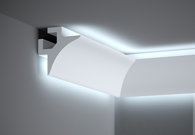 Garnýžová LED osvětlovací lišta, NEPŘÍMÉ OSVĚTLENÍ, tvrdý plast PolyForce (HD Polymer), základní bílý nátěr (přetíratelný), 120 x 40 x 2400 mm