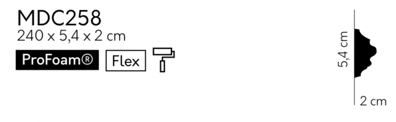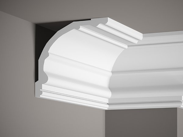 Nástěnná lišta – S ORNAMENTEM, tvrdý plast ProFoam® (polyuretan), základní bílý nátěr (přetíratelný), 54 x 20 x 2000 mm