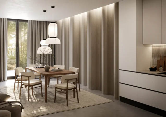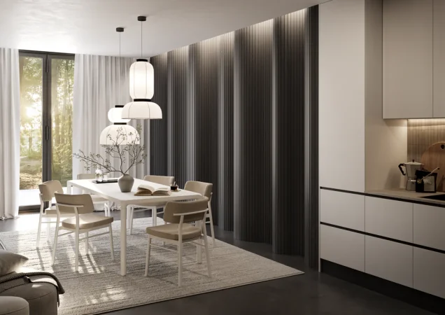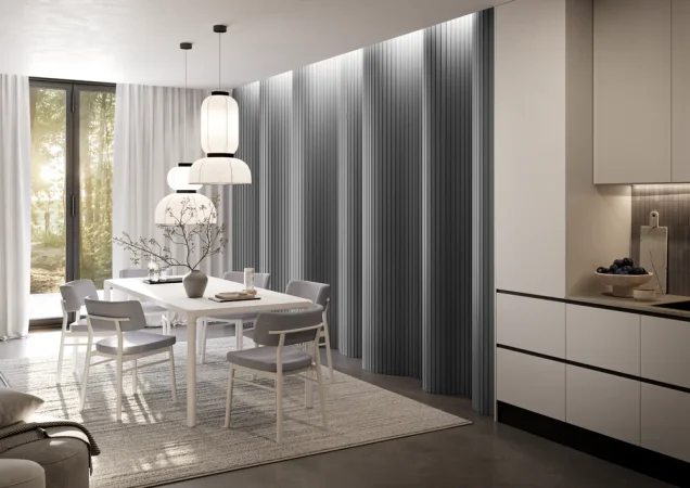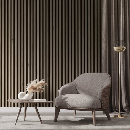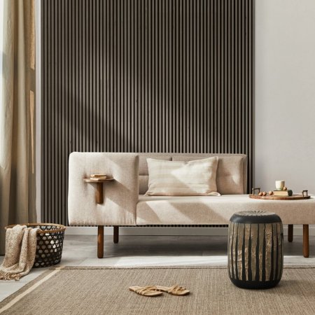 Akustický panel ACOUSTIC LINE - hakira beige | černá, 2650 x 245 x 22 mm, lamely MDF + FINISH FOLIE, akustický podklad FILC