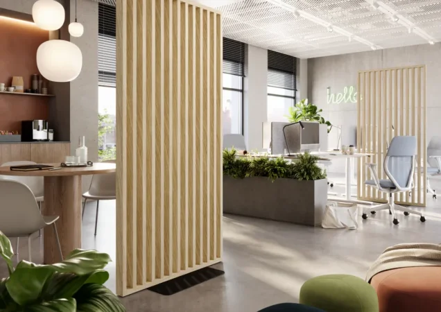 Dělící lamelová stěna s podstavcem - volně stojící, 990 x 2005 mm, (MDF), OŘECH