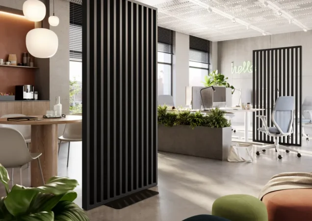 Dělící lamelová stěna s podstavcem - volně stojící, 990 x 2005 mm, (MDF), ČERNÁ