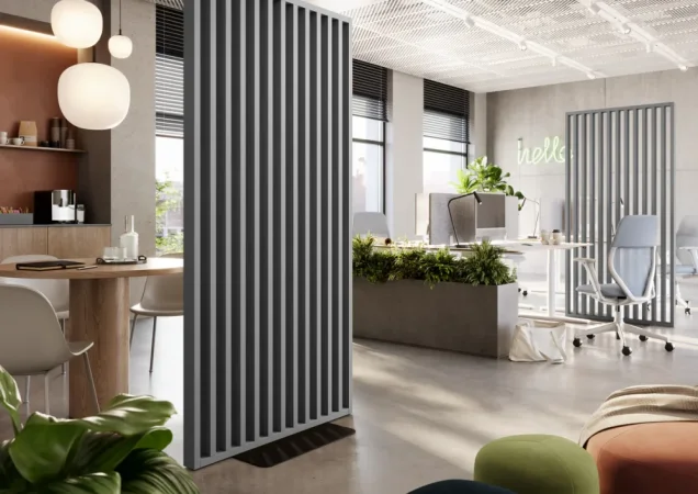 Dělící lamelová stěna s podstavcem - volně stojící, 990 x 2005 mm, (MDF), GRAFIT