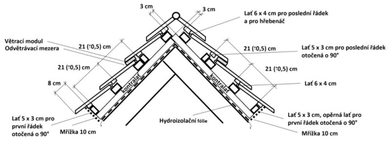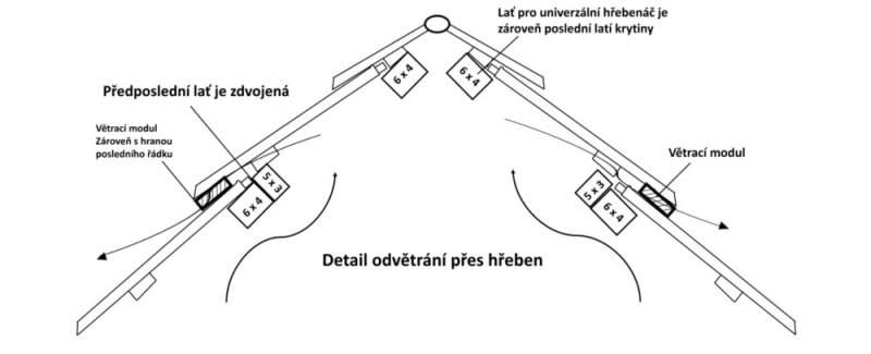 Větrací modul VME1 – odvětrání střešního pláště přes hřeben (CPS a MODERNA)