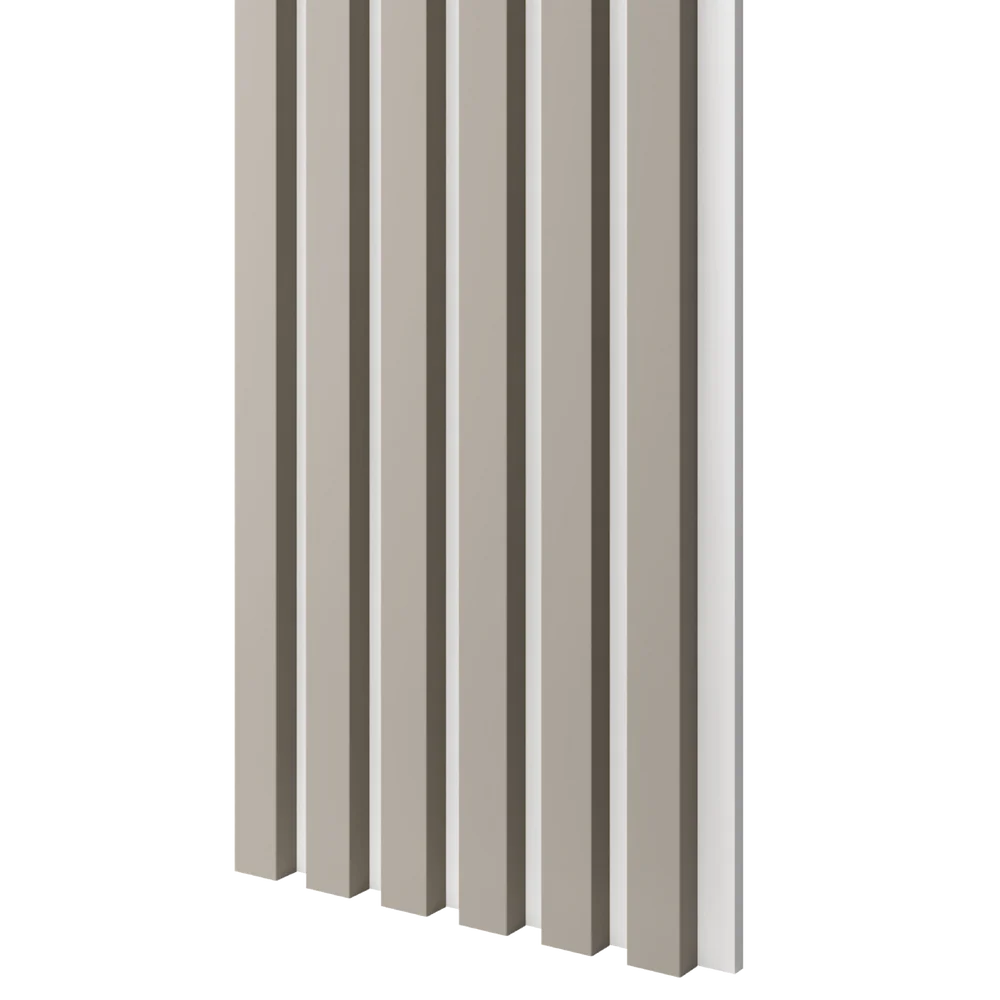 Dřevěné lamely ÚZKÉ na BÍLÉ desce (MDF), PÍSKOVÁ BÉŽOVÁ, FINISH FOLIE, 24 x 300 x 2750 mm (0,825 m2)