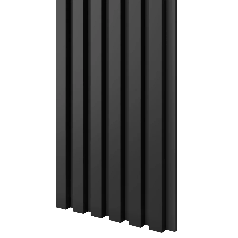 Dřevěné lamely ÚZKÉ na ČERNÉ desce (MDF), ČERNÁ MATNÁ, FINISH FOLIE, 24 x 300 x 2750 mm (0,825 m2)