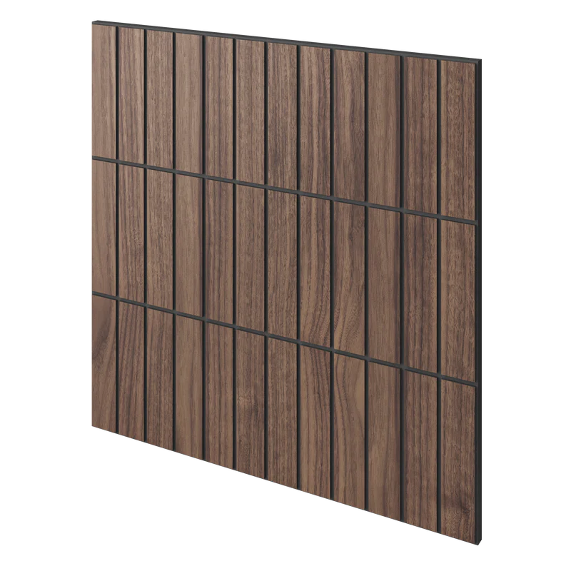 Lamelový panel BARCELONA - DÝHA Z AMERICKÉHO OŘECHU, 600 x 600 mm, ČERNÝ MDF PANEL