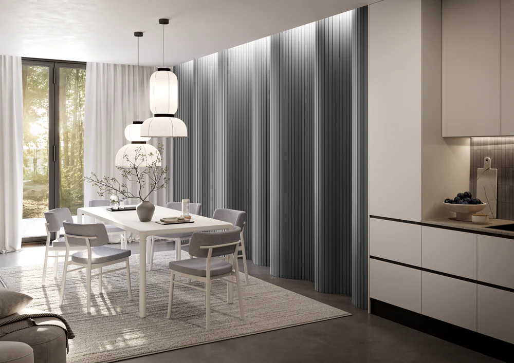 Lamele Puzzle je inovativní řešení, které kombinuje klasickou estetiku lamel s výjimečnou funkčností. Díky unikátním koncovkám ve tvaru puzzle můžete vytvářet dekorace nejen na rovných plochách, ale i na stěnách s nestandardními tvary – vypouklými, konkávními nebo zakřivenými. Jedná se o perfektní volbu, pokud chcete interiéru dodat individuální charakter a dynamický vzhled.